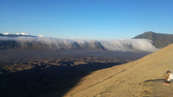 Cependant, ce trek ne peut se faire que si la direction du vent est dans la bonne direction et que le vent éloigne suffisamment les fumées volcaniques du bord gauche de la crête du Bromo (coté est)