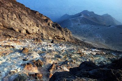 En fin de compte, vous atteindrez une zone où vous sentez que le sol devient beaucoup plus chaud et que, dans quelques zones, vous passerez plusieurs bouches où de la vapeur volcanique chaude sort de la montagne. De cette zone, il vous faudra environ 15 minutes pour atteindre le bord du cratère. Les 100 derniers mètres dévoilent un monde montagneux incroyable d’éboulis et d’énormes débris de roche volcanique créés lors des énormes éruptions de 2010. L’odeur de soufre peut être écrasante.